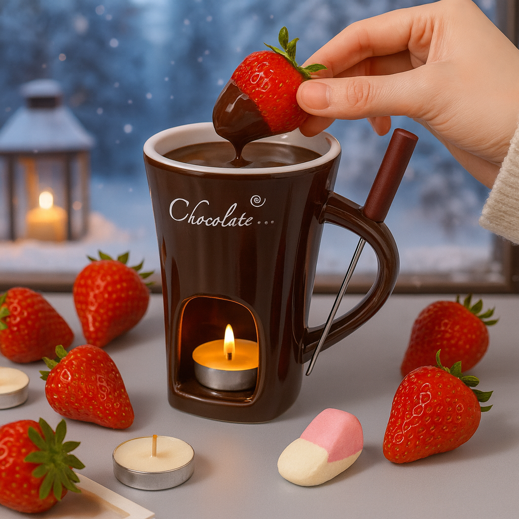 Med värmeljus under hålls chokladen varm så du kan doppa allt från jordgubbar till julgodis och skumtomtar. En enkel, stämningsfull och supergod tradition för hela familjen. 🍫✨